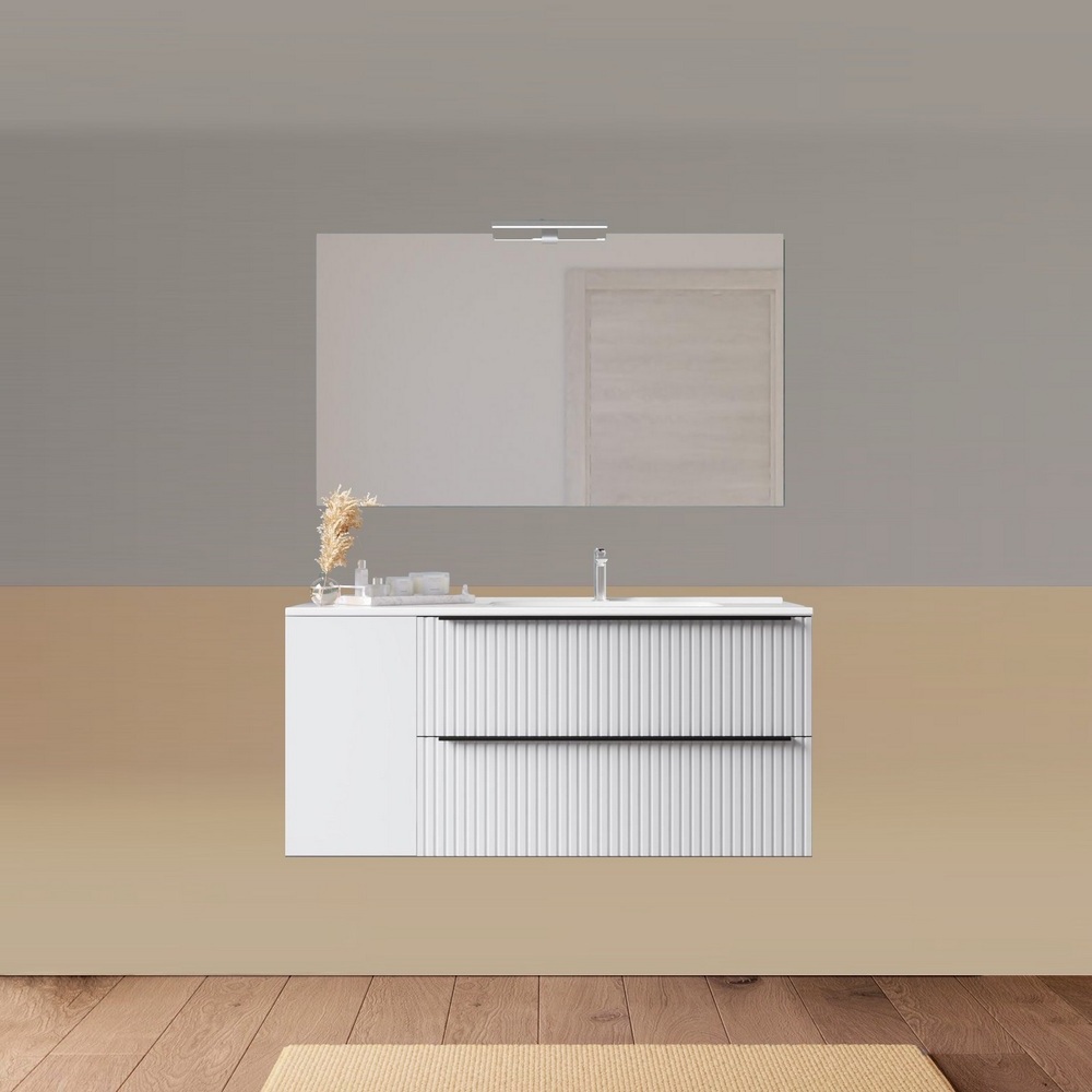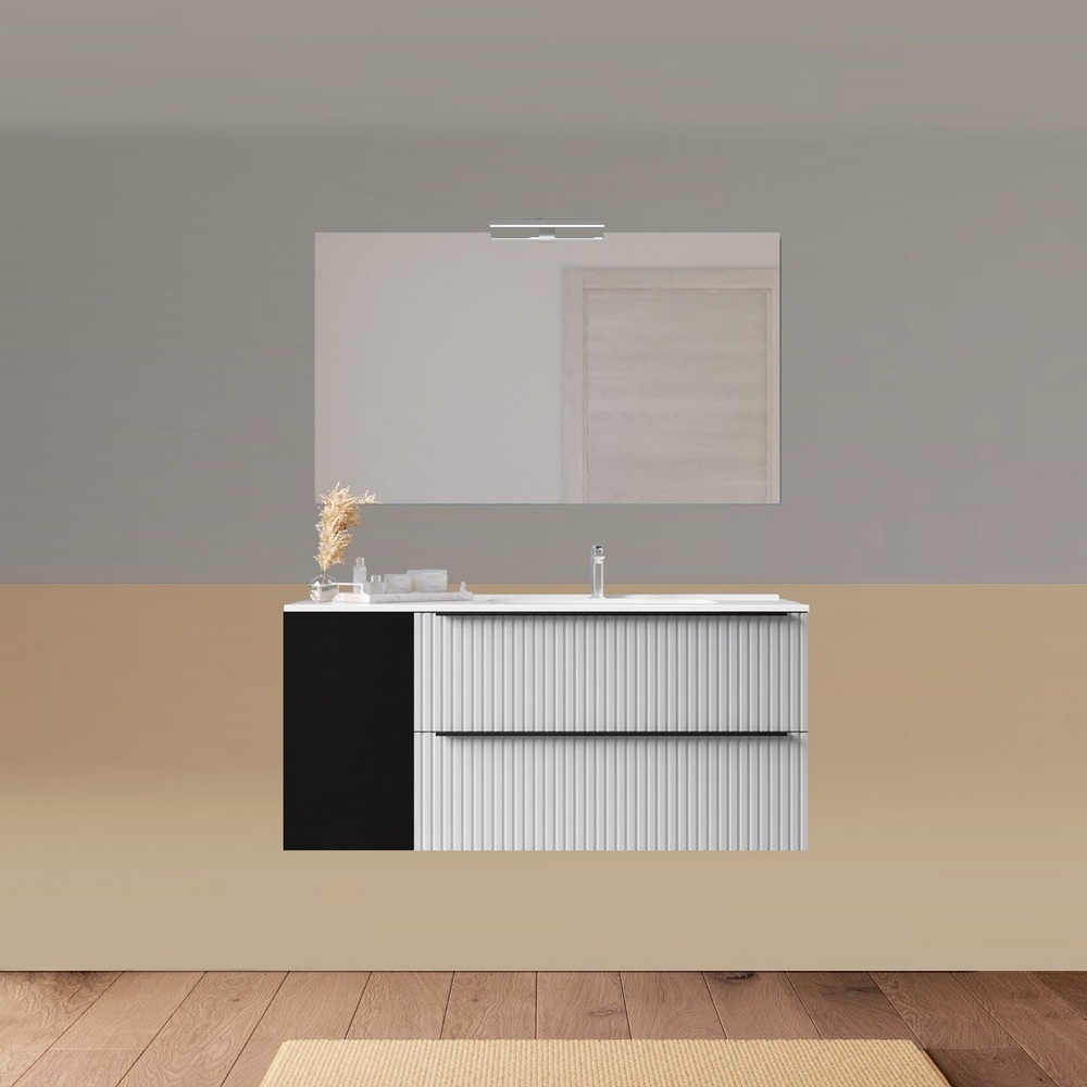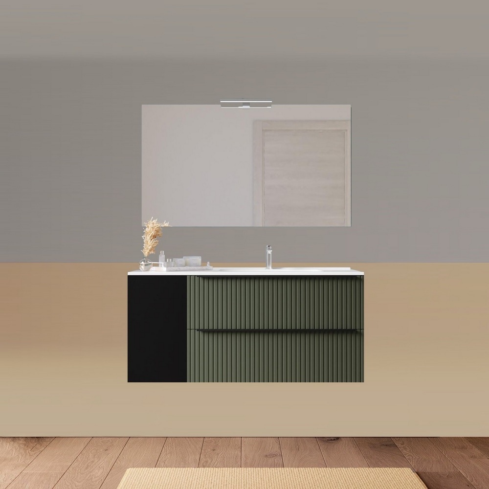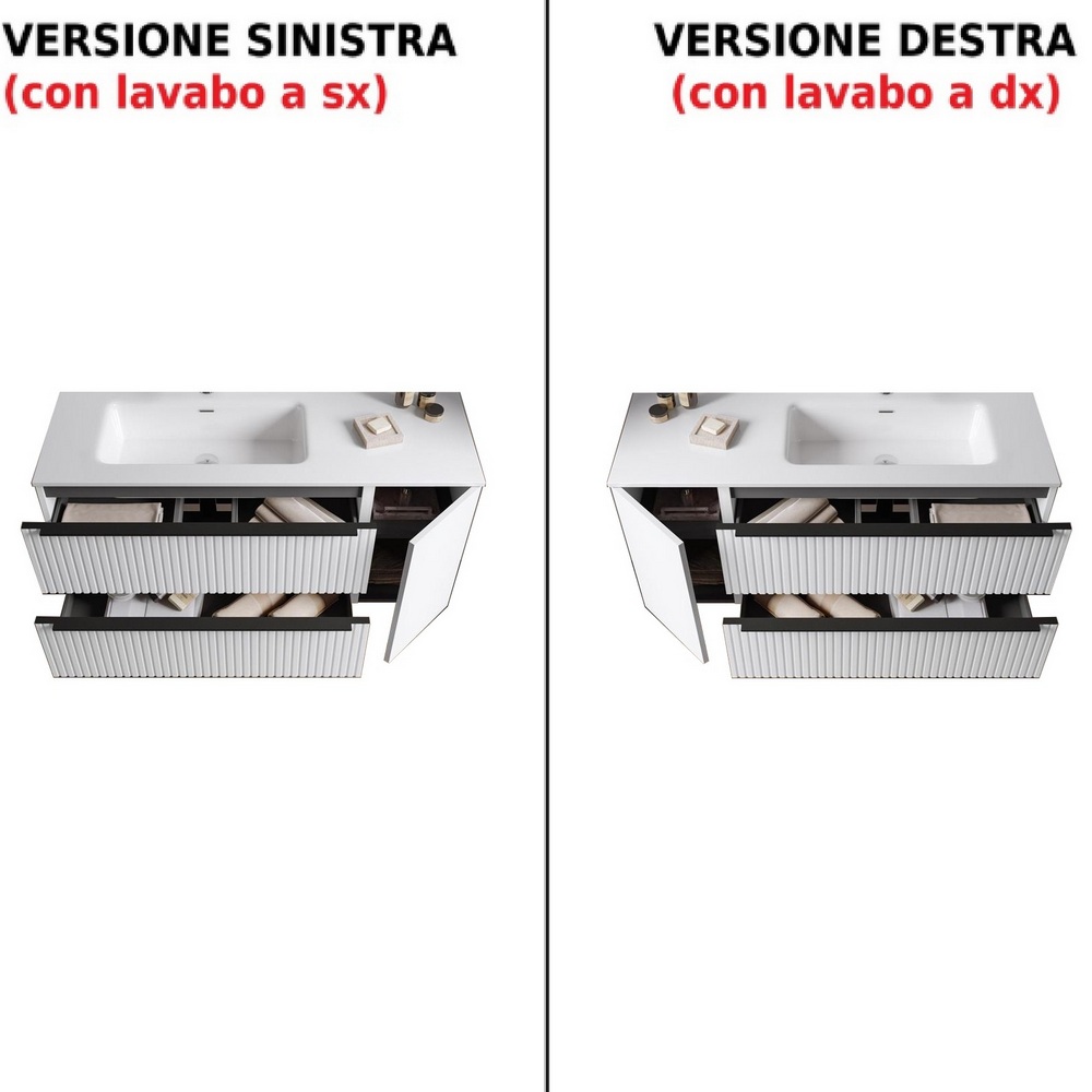 Arredo bagno Lion6 mobile sospeso da 120 cm con cassetti e anta lavabo dx o sx specchio incluso