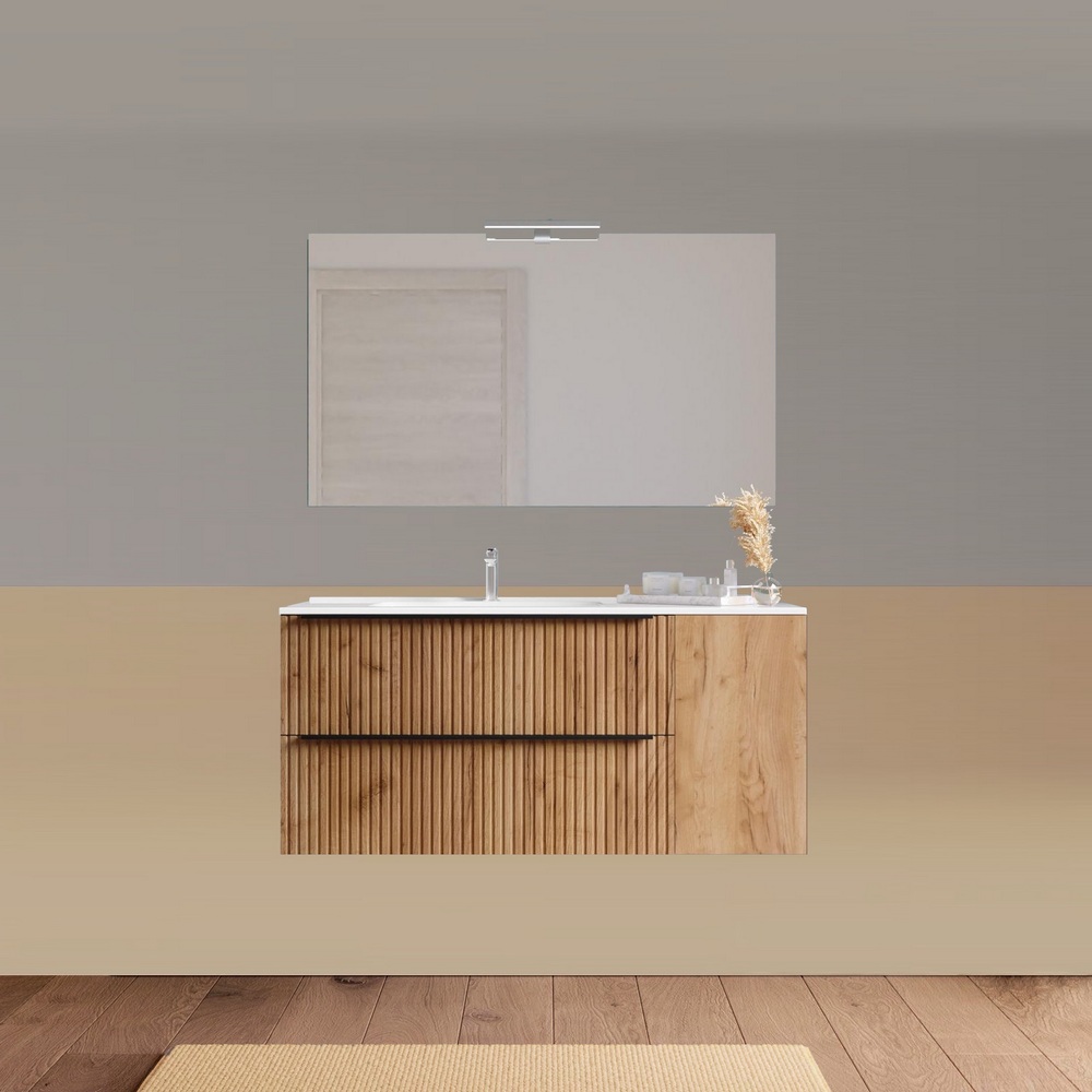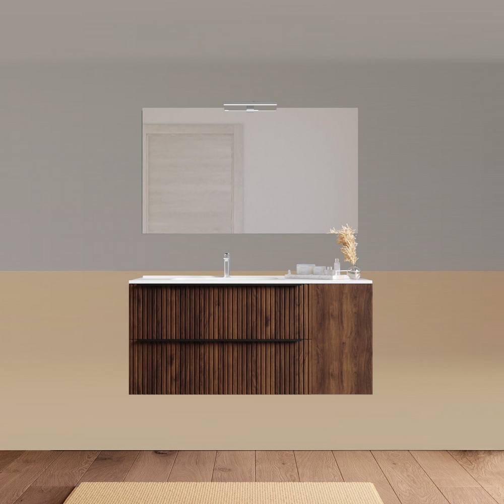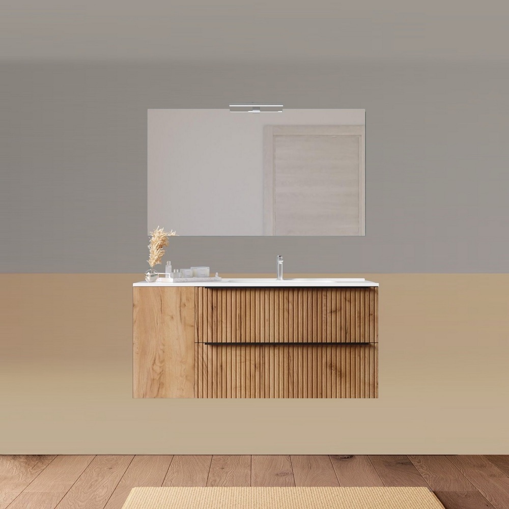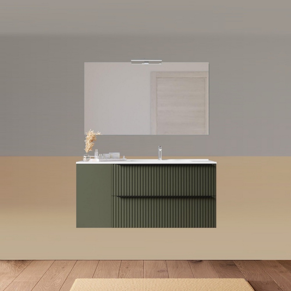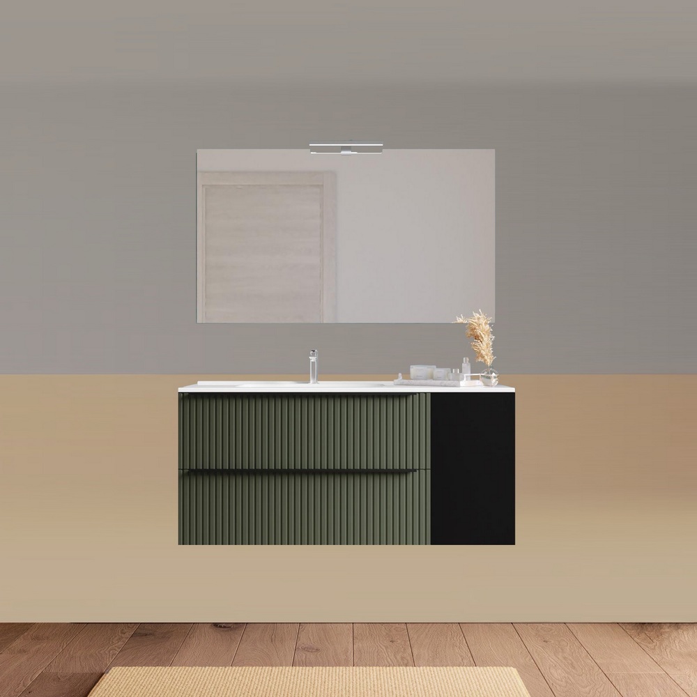 Arredo bagno Lion6 mobile sospeso da 120 cm con cassetti e anta lavabo dx o sx specchio incluso