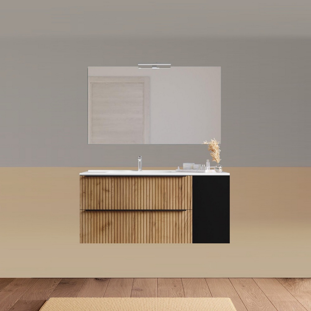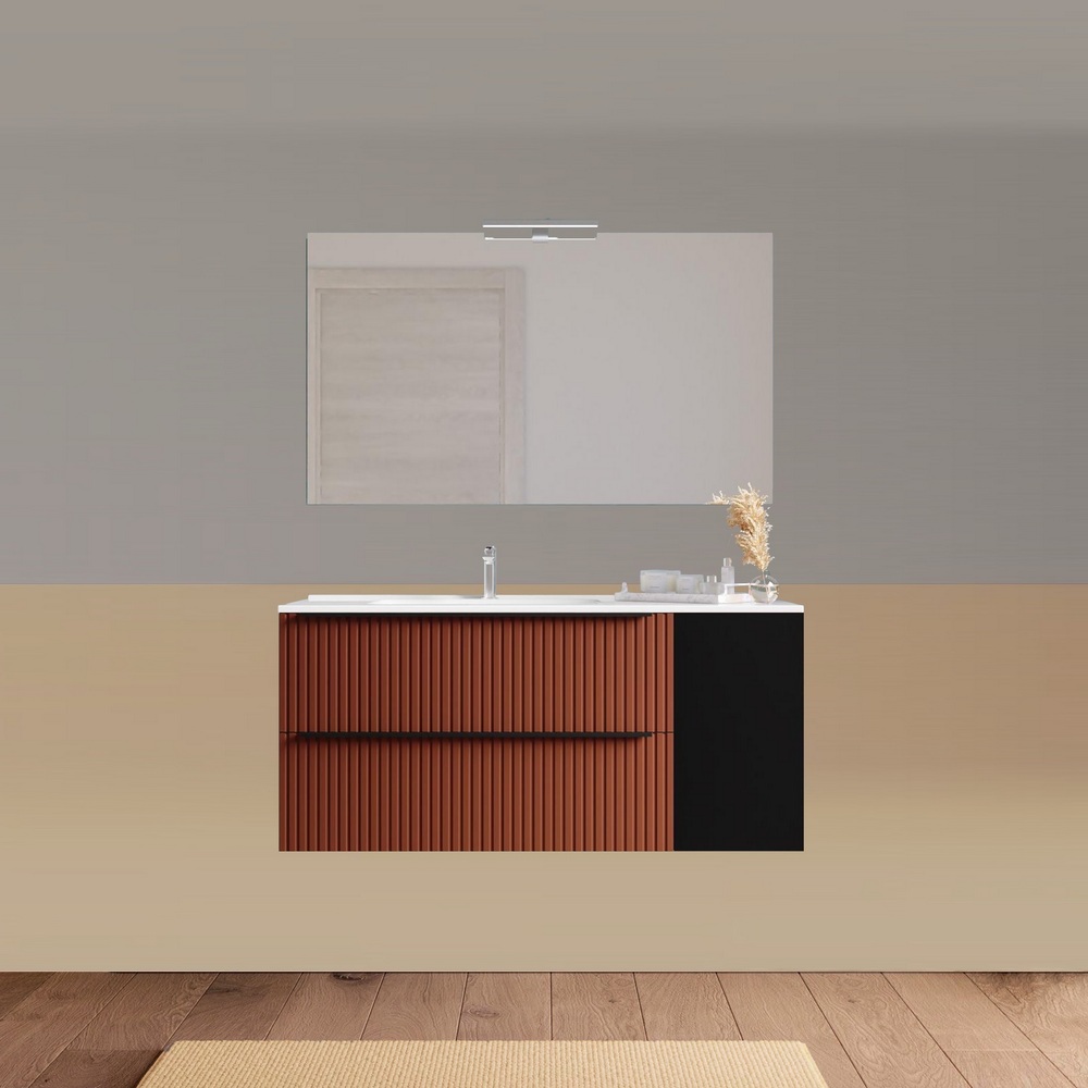 Home Arredo bagno Lion6 mobile sospeso da 120 cm con cassetti e anta lavabo dx o sx specchio incluso