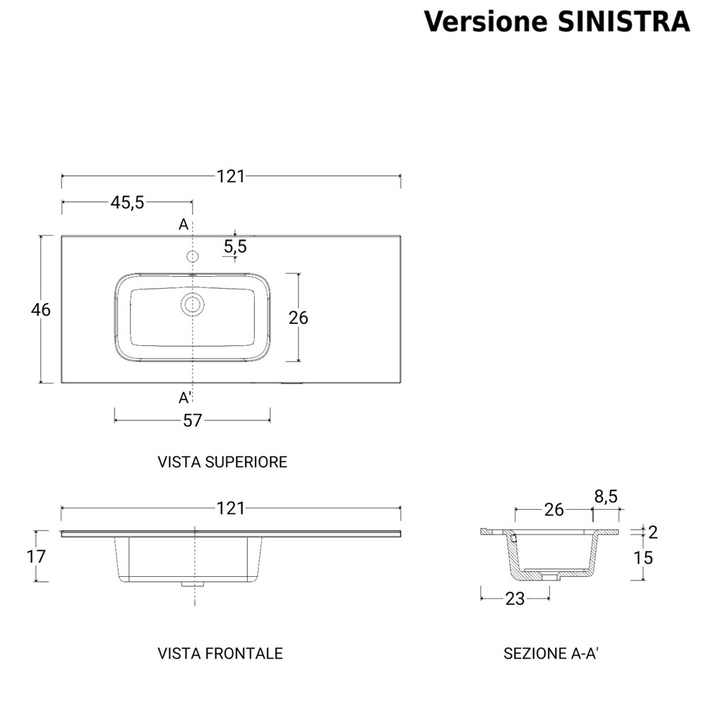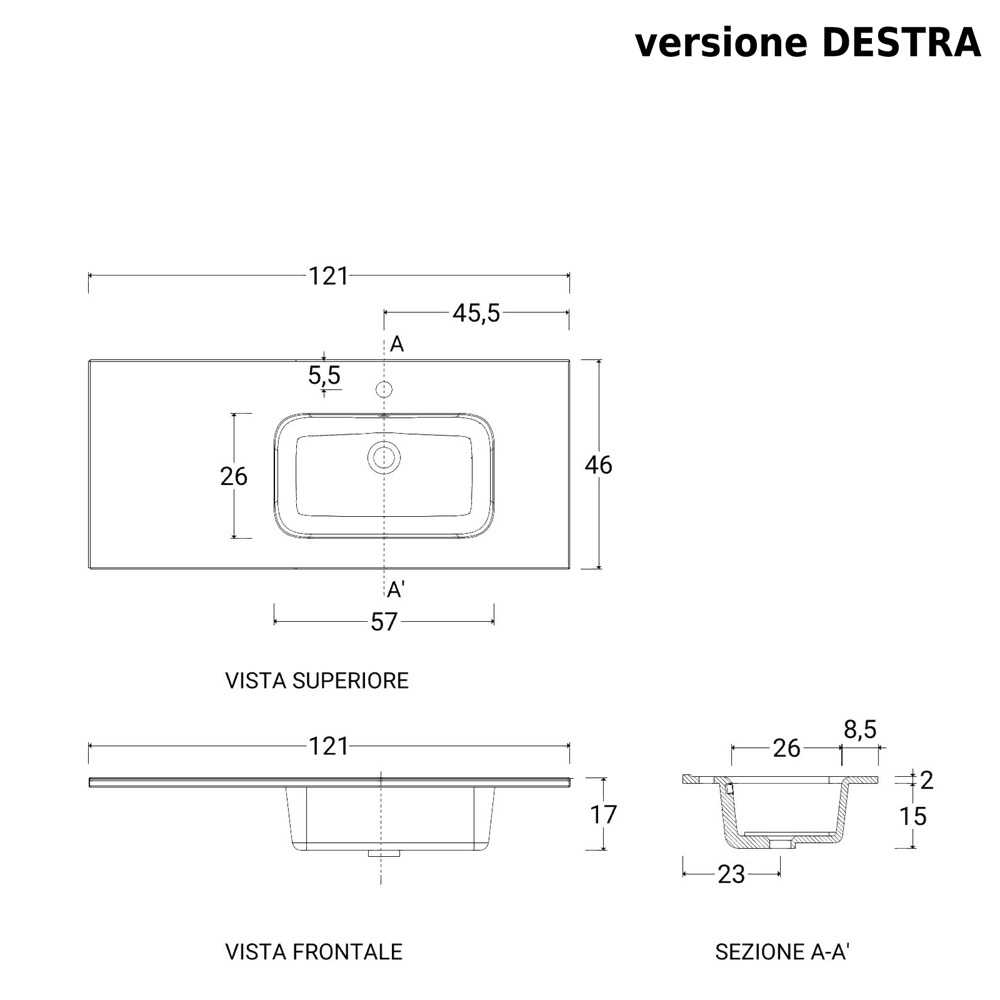 La vasca del lavabo può essere decentrata a destra o a sinistra