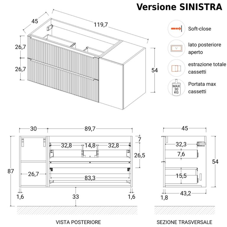 Arredo bagno 120 cm con cassetti e anta “Lion6”