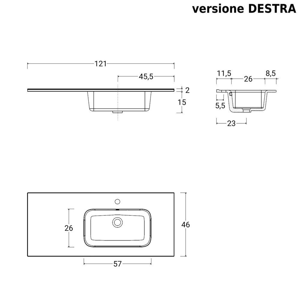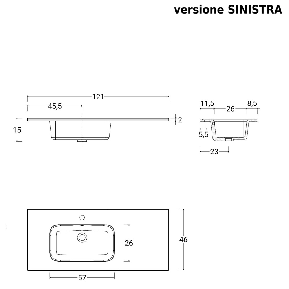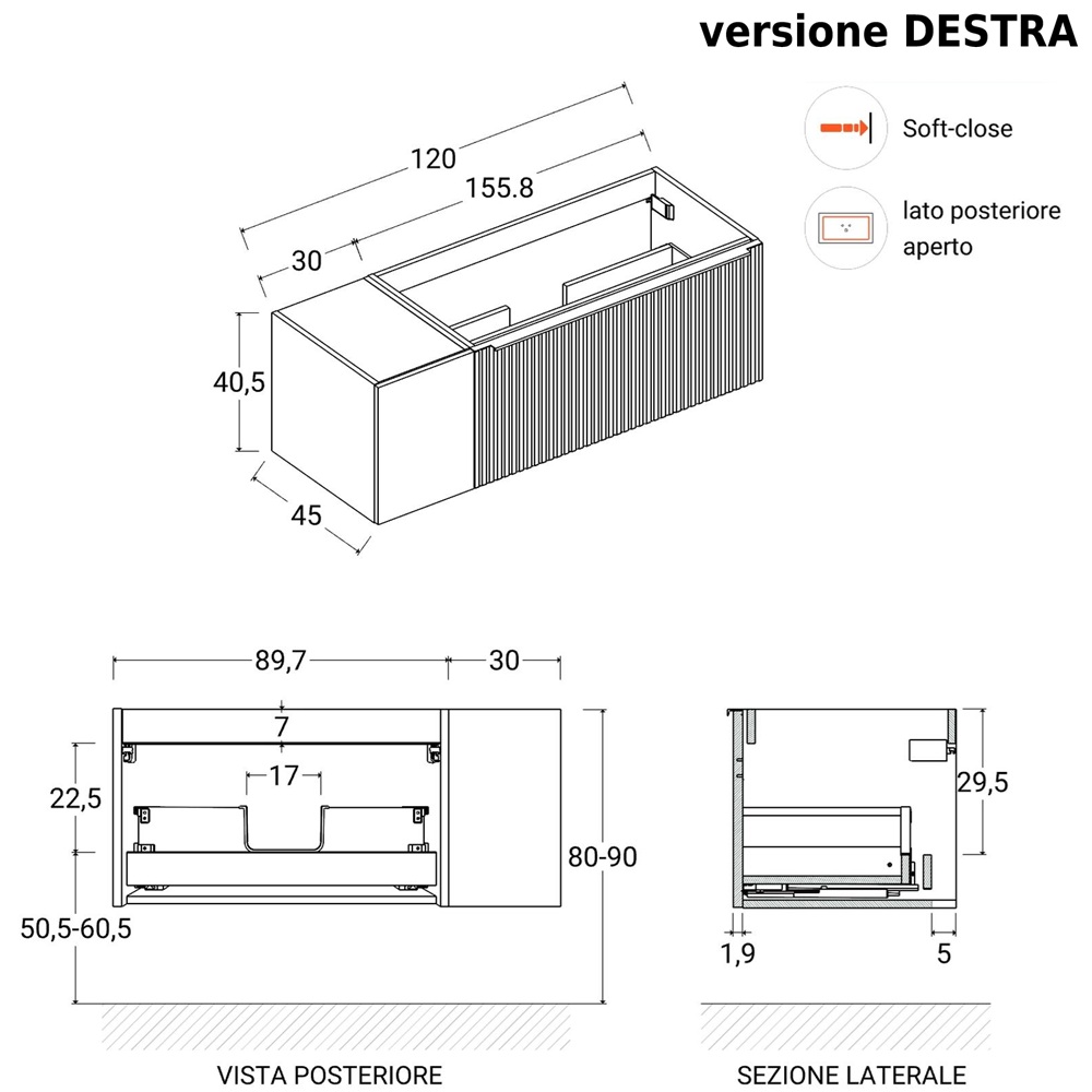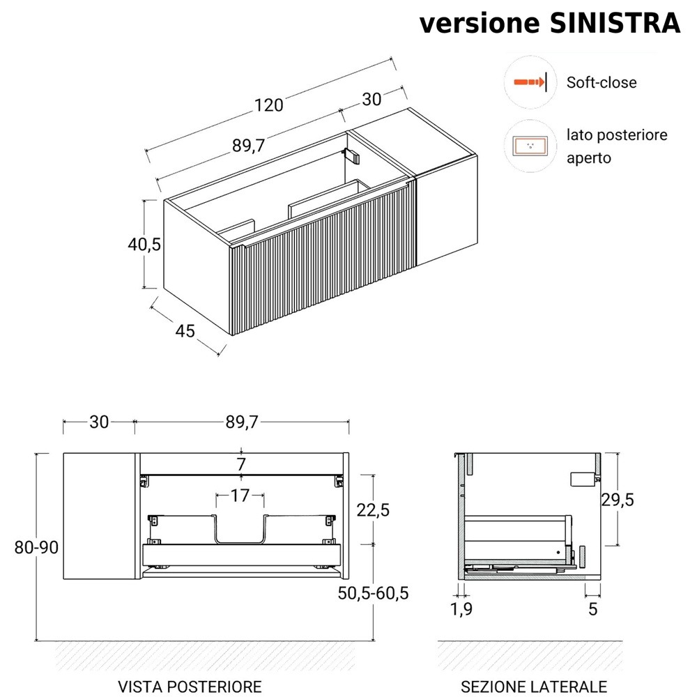 Arredo bagno sospeso di dimensioni 120xP45xH40,5 cm