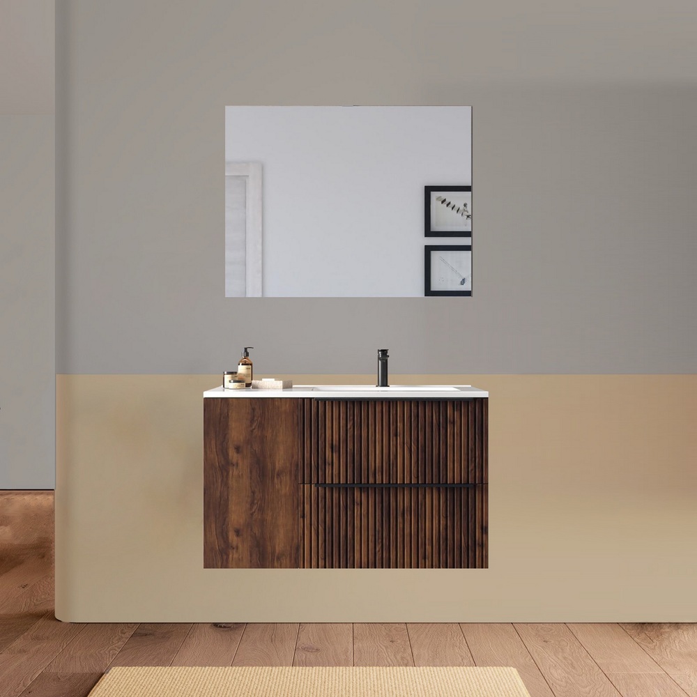 Mobile da bagno moderno Titan 100 cm color wengè in OFFERTA
