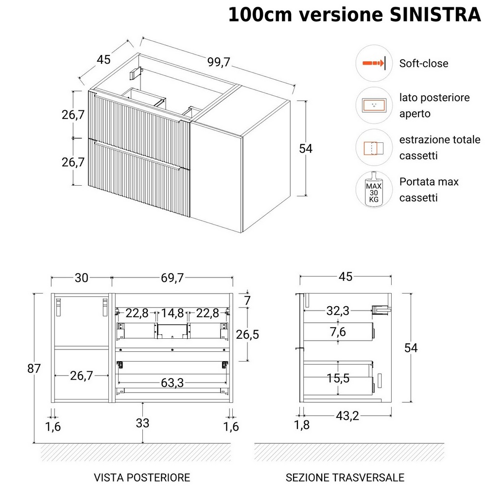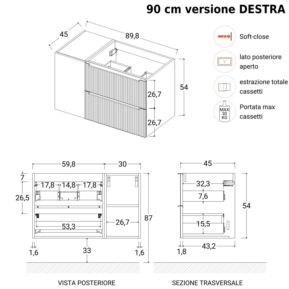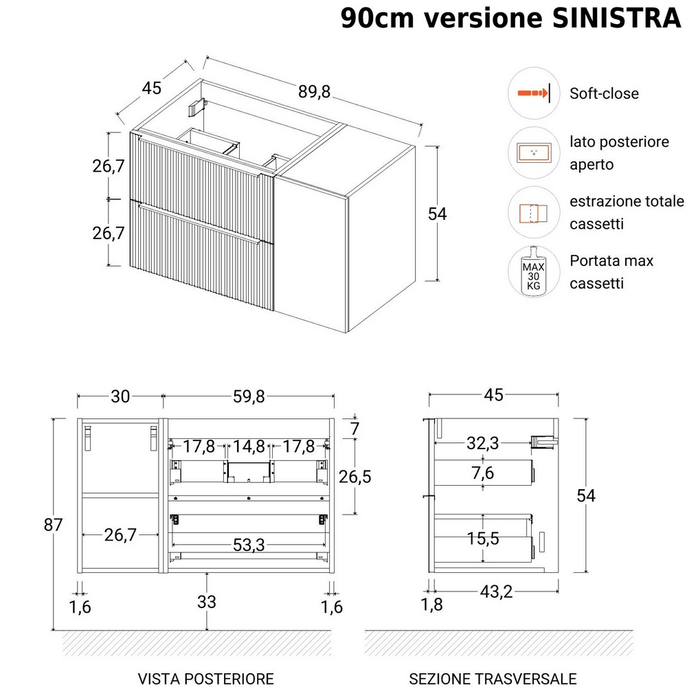 Il mobile è disponibile nelle misure (seleziona la dimensione dal menù a tendina sovrastante):