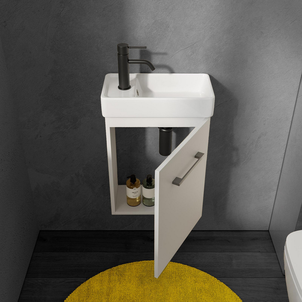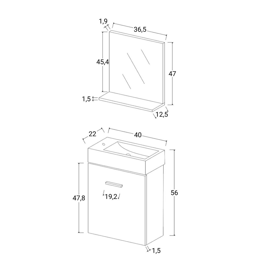 Arredo bagno moderno 60×40 cm modello Rodeo salvaspazio sospeso in 3 colori lavabo in ceramica e specchio compreso