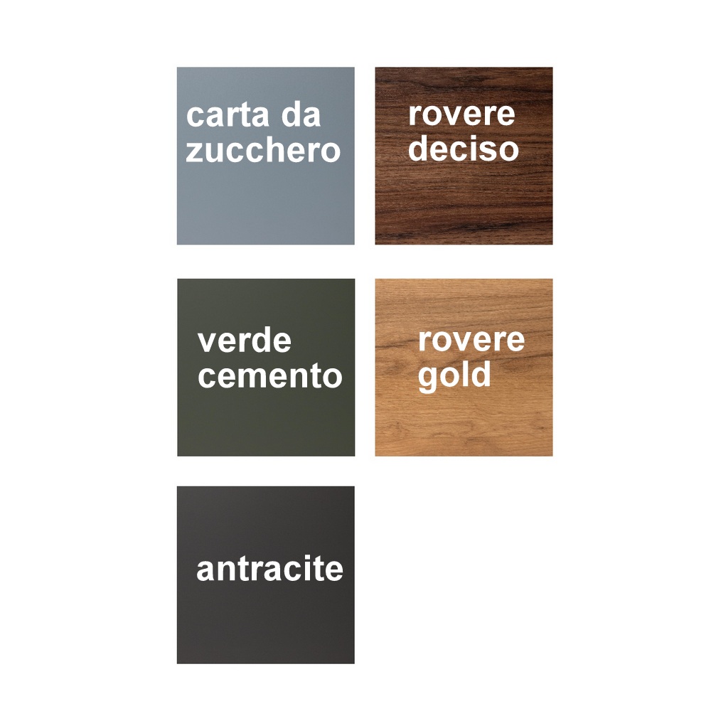 Colori della base: bianco opaco, carta da zucchero, verde cemento, antracite, rovere deciso, rovere gold