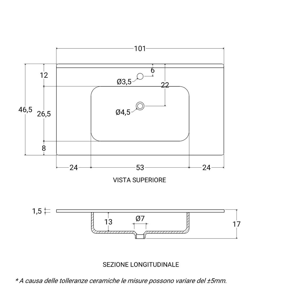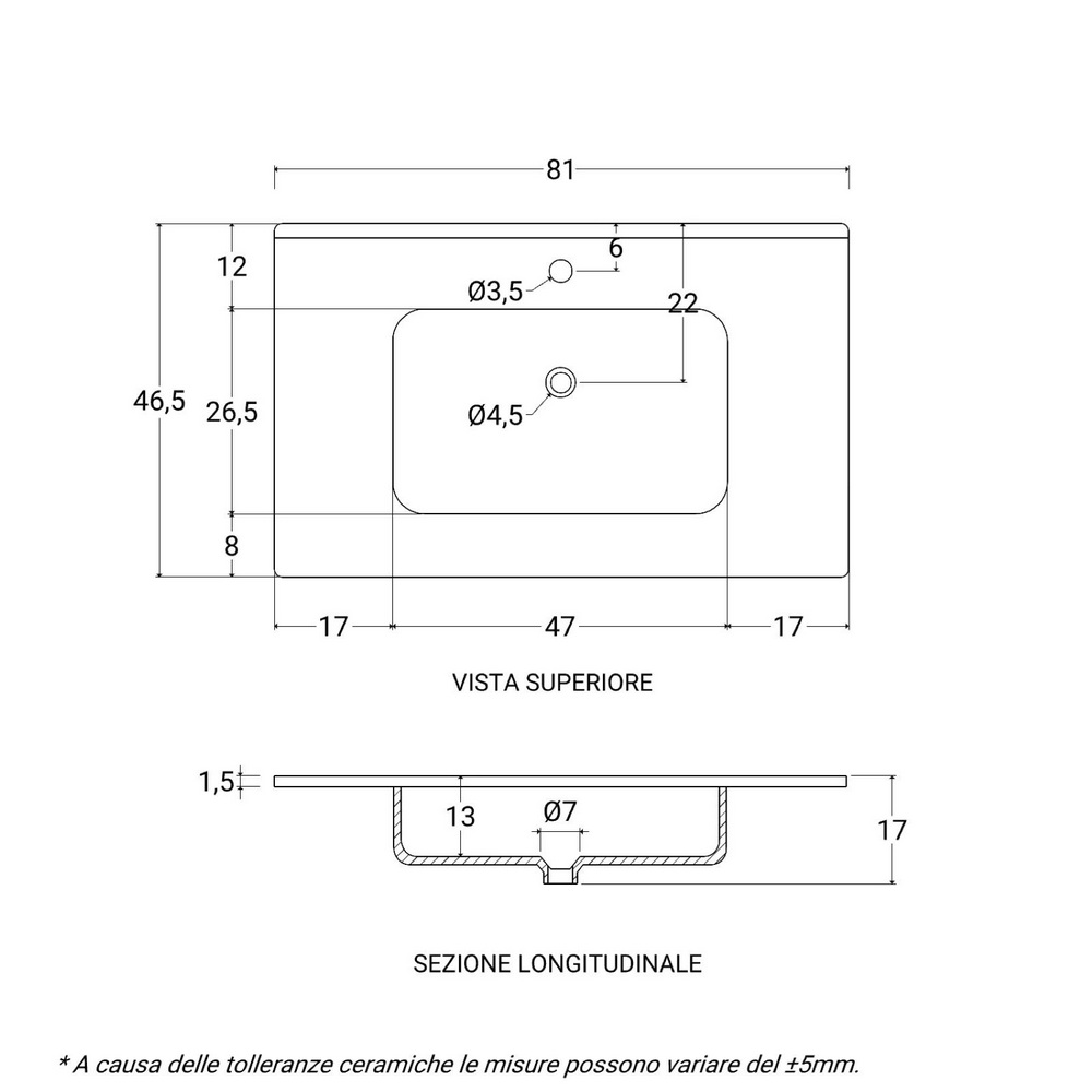 nr.1 lavandino in ceramica con foro troppopieno e foro miscelatore