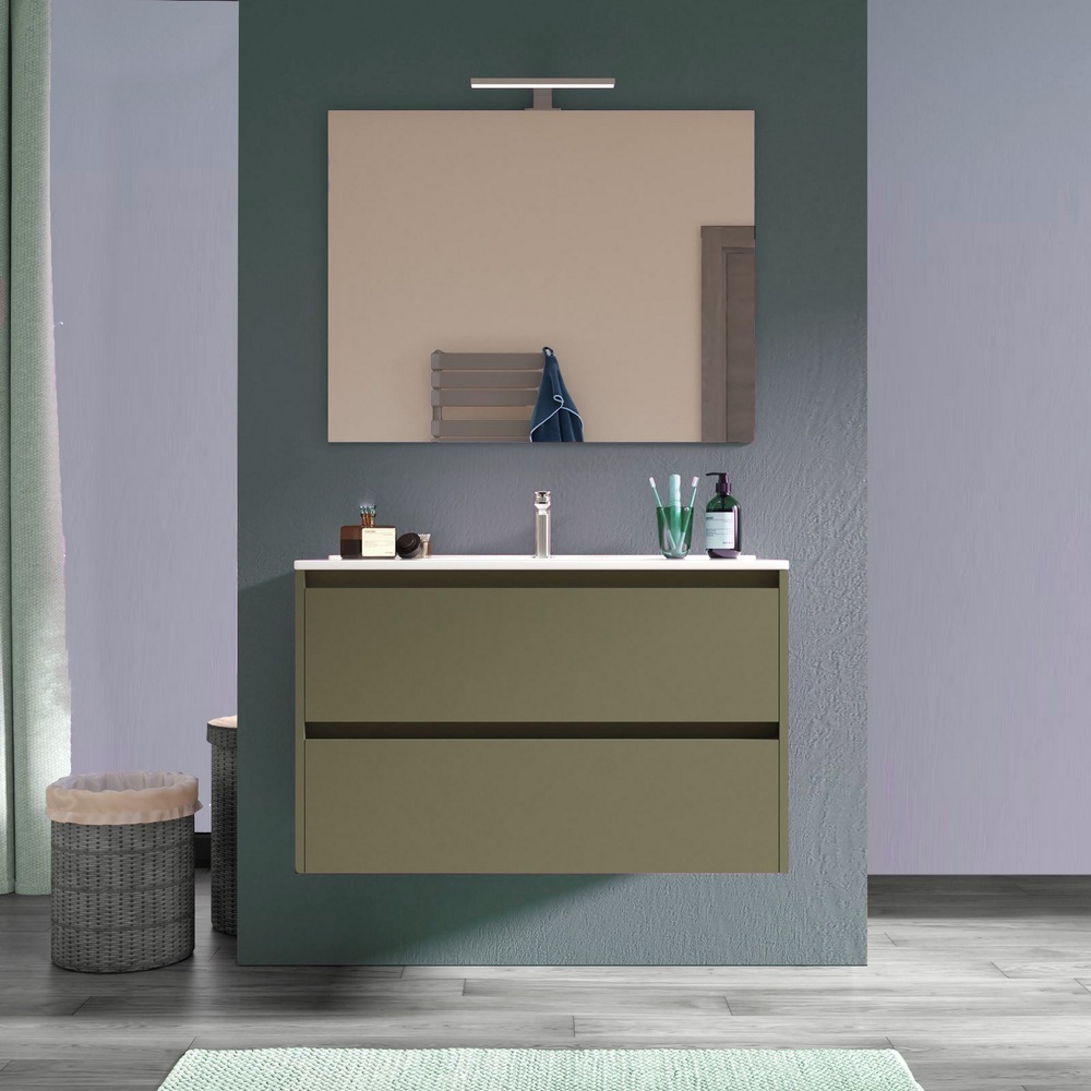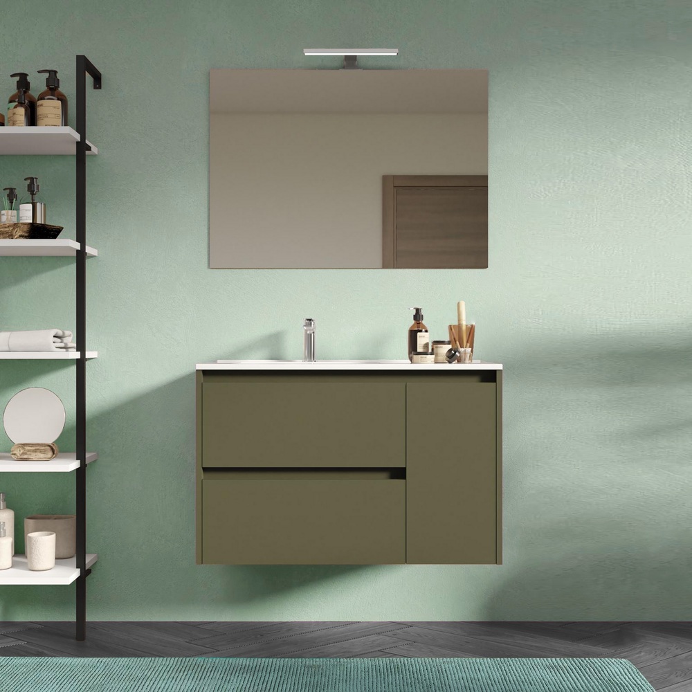 Arredo bagno sospeso modello Green cm 80x45x57 in 2 colori con 2 cassetti specchiera inclusa nel prezzo
