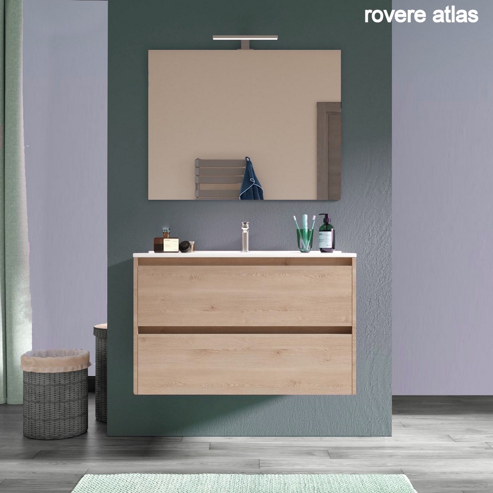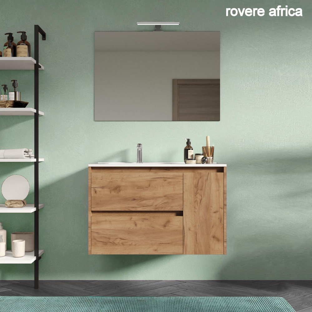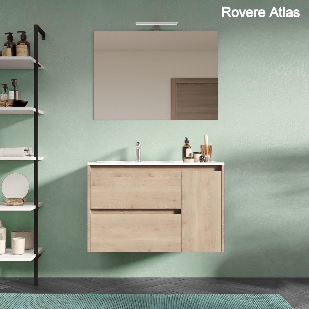 Arredo bagno Egos 75cm o 100cm bianco rock o rovere 2 cassetti soft-close