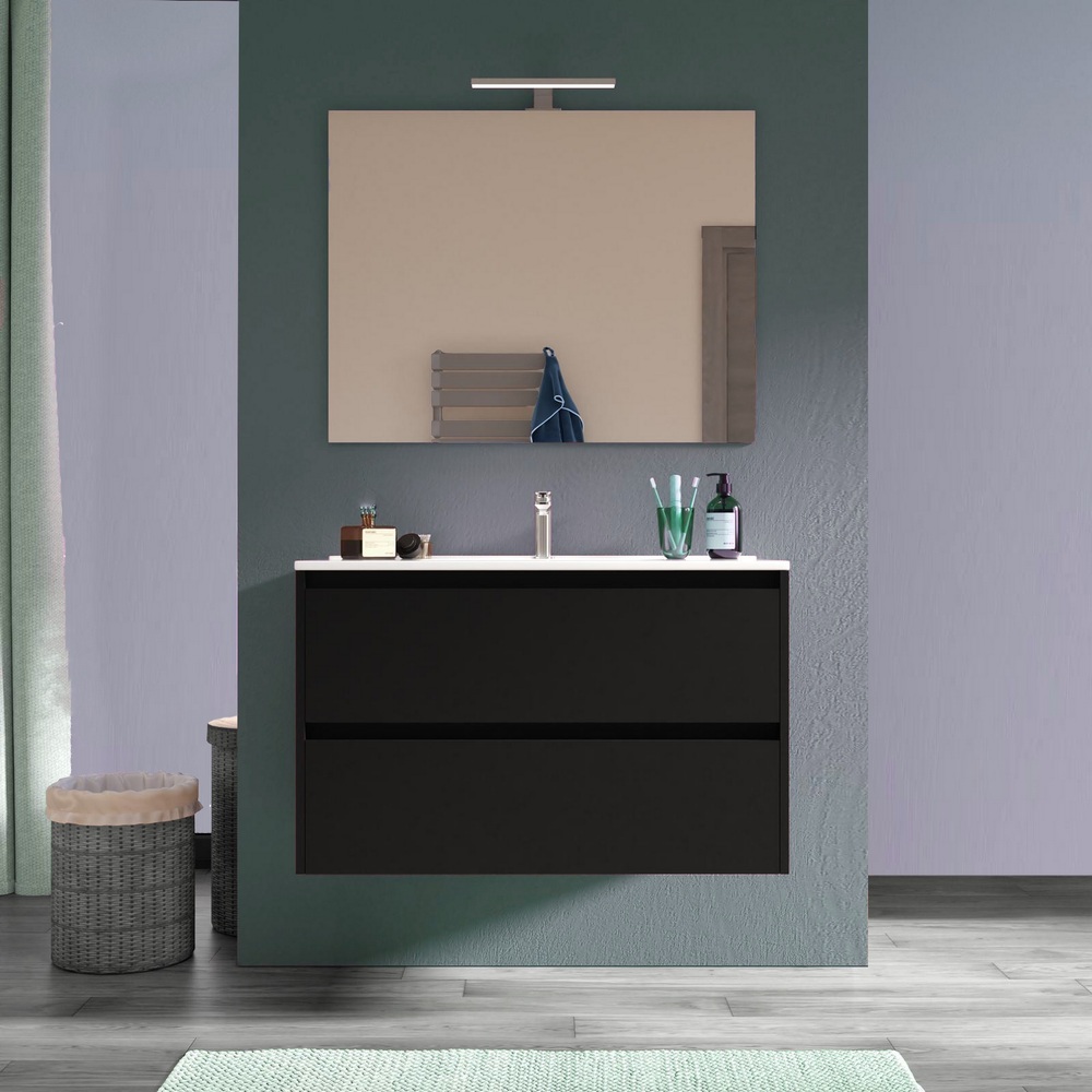 Arredo da bagno Milos da 100 cm sospeso bianco o grafite legno MDF e lavabo