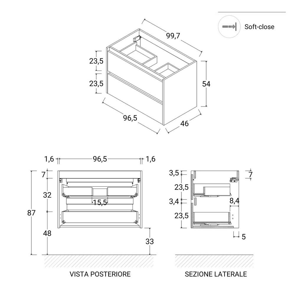 Mobile bagno moderno sospeso disponibile nelle seguenti misure (da selezionare nel menù in alto):