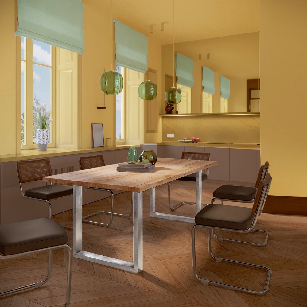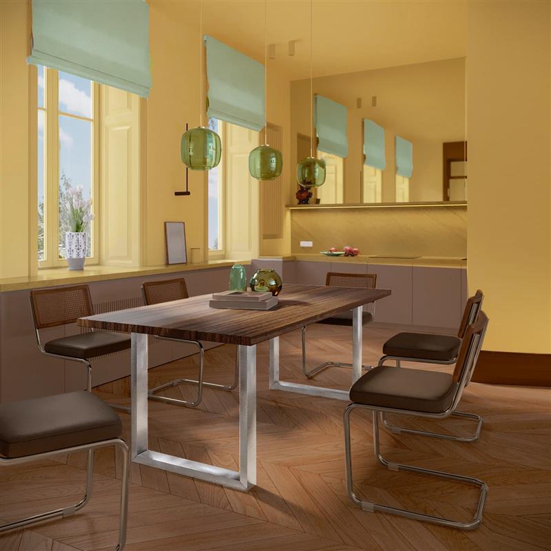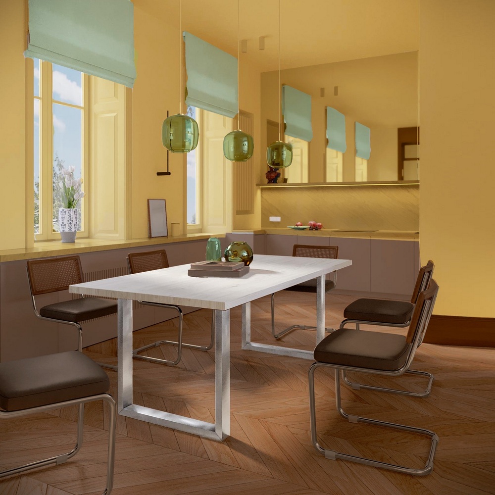 Tavolo da pranzo 6-8 posti 180×90 con gambe ad “U” in metallo cromato disponibli nell emisure 8×4 oppure 5×5 (seleziona la tipologia dal menù a tendina)