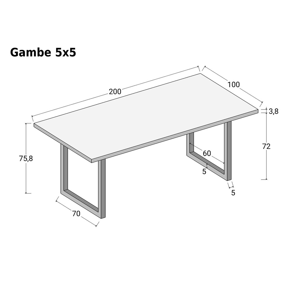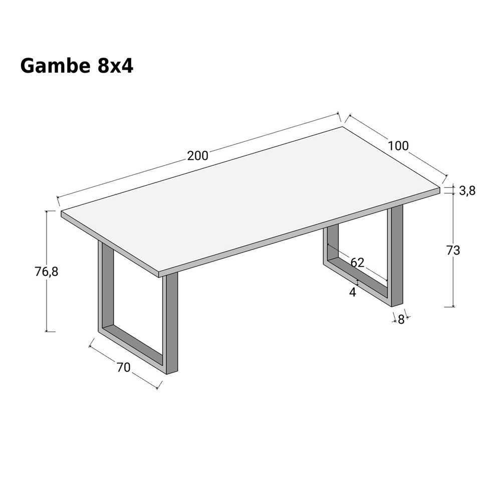 Tavolo 200×100 da 8 posti con struttura in metallo NERO opaco con gambe ad “U” disponibili nelle misure 8×4 oppure 5×5 (seleziona la tipologia dal menù a tendina)