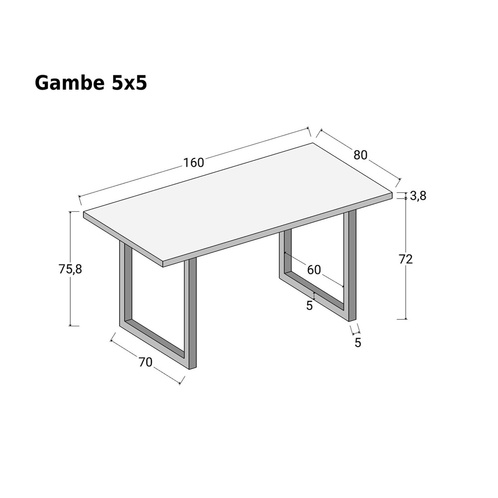 Tavolo da pranzo 160×80 con gambe ad “U” in metallo NERO opaco disponibili nelle misure 8×4 oppure 5×5 (seleziona la tipologia dal menù a tendina)