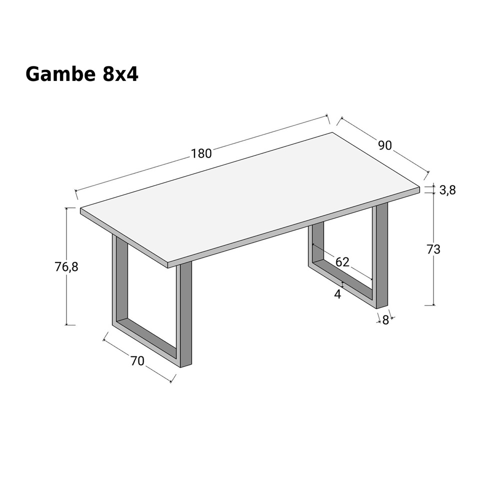 Tavolo da pranzo 180×90 8 posti realizzato con gambe ad “U” in metallo NERO opaco disponibili nelle misure 8×4 oppure 5×5 (seleziona la tipologia dal menù a tendina)