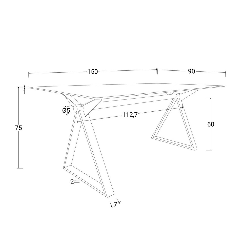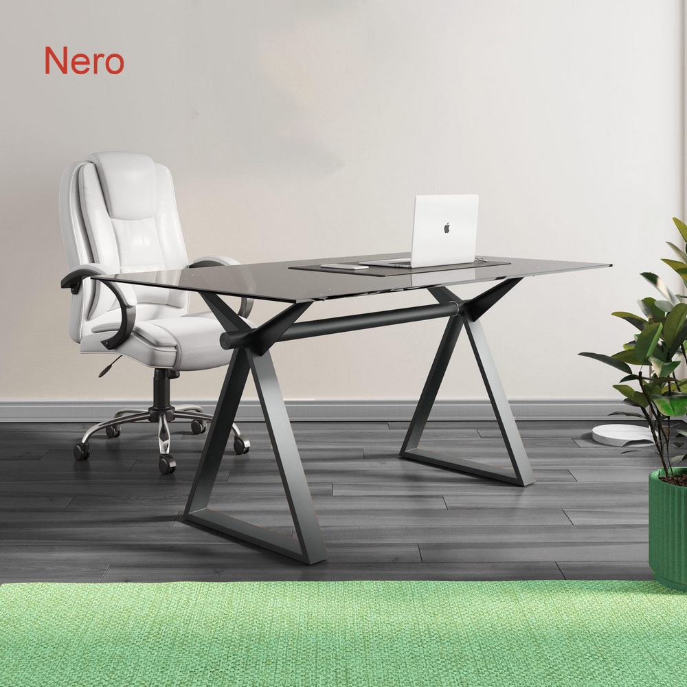 Il top è in vetro temperato da 10mm di spessore e le gambe in acciaio