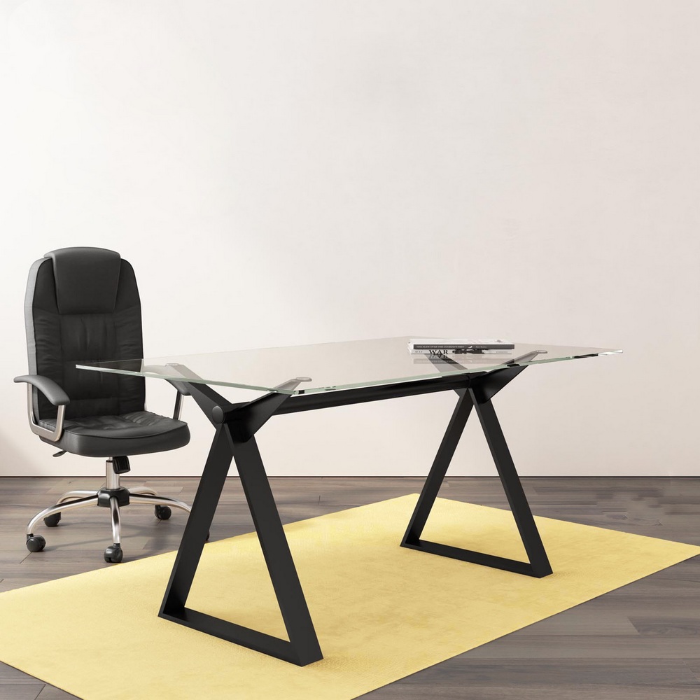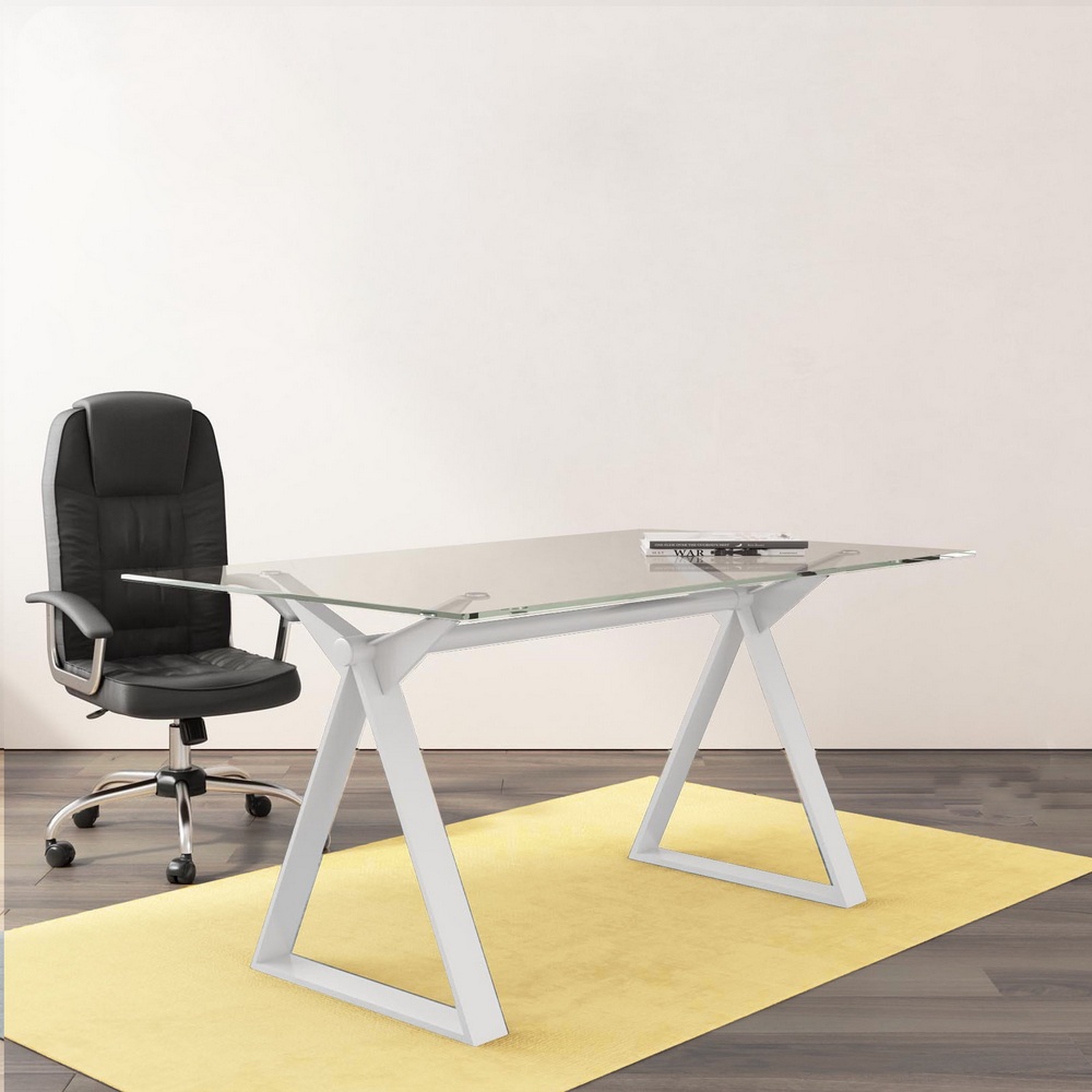 Home Arredo tavolo scrivania da 150 o 180 cm struttura in acciaio e piano in vetro trasparente in 5 colori TV048