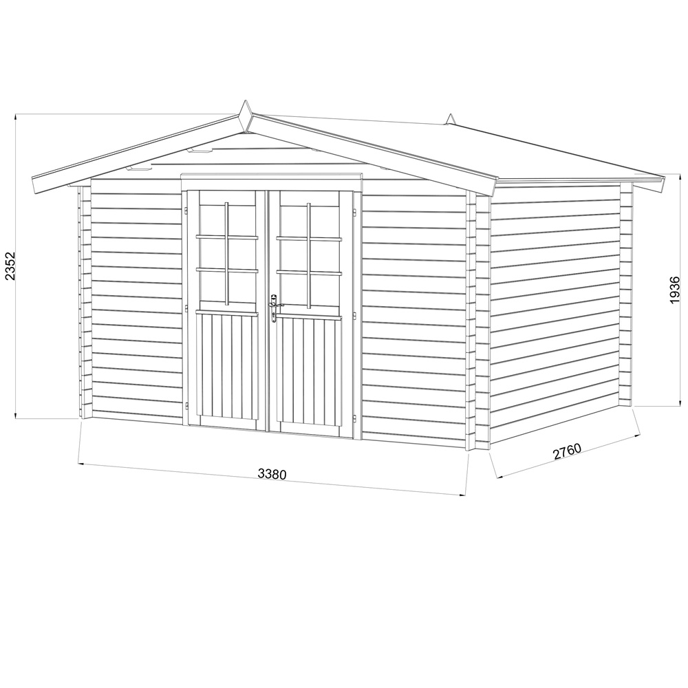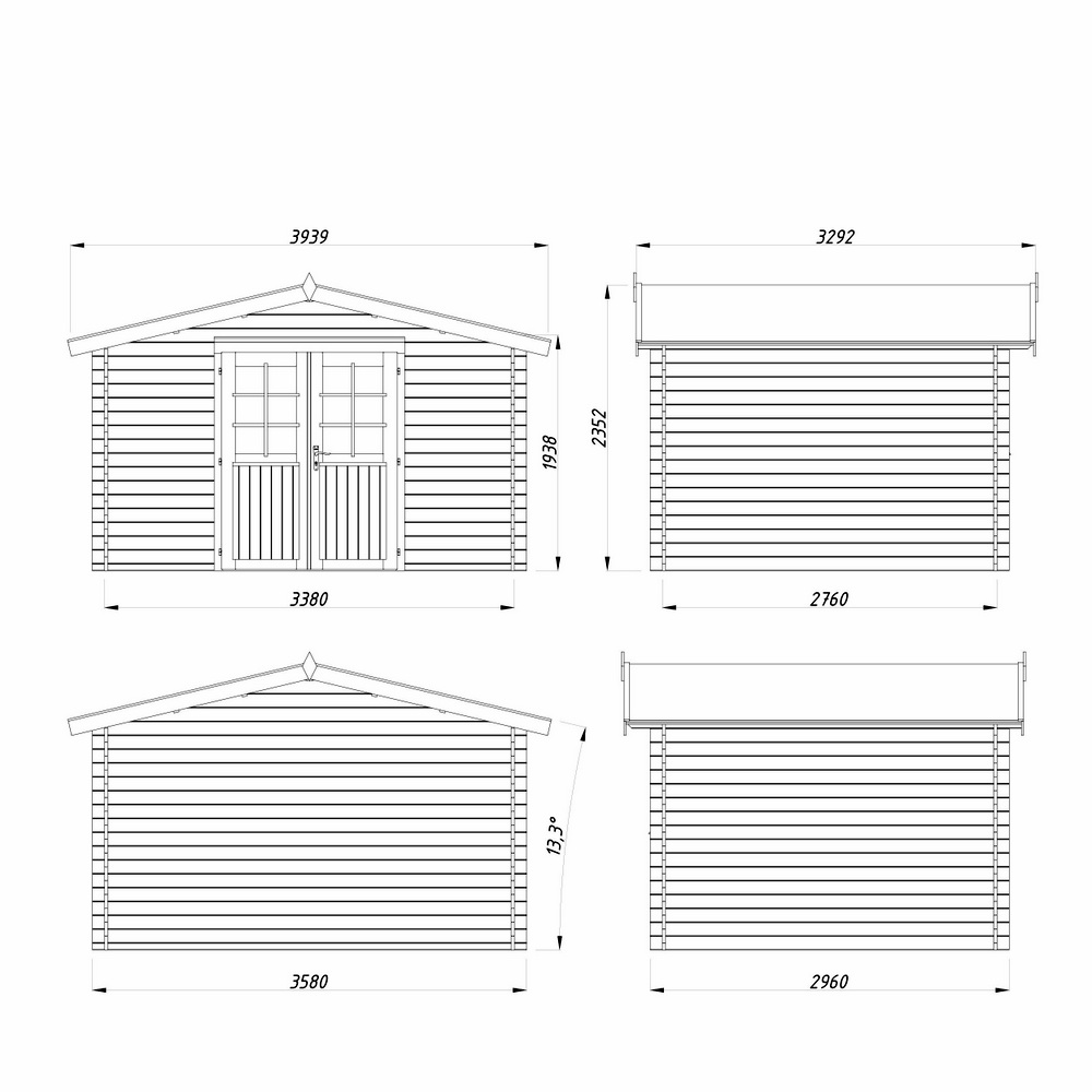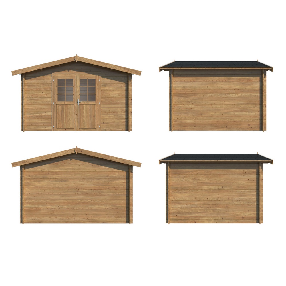 Casetta in legno rettangolare 358×296 cm per ambienti esterni realizzata in legno di abete impregnato in autoclave color marrone e essiccato