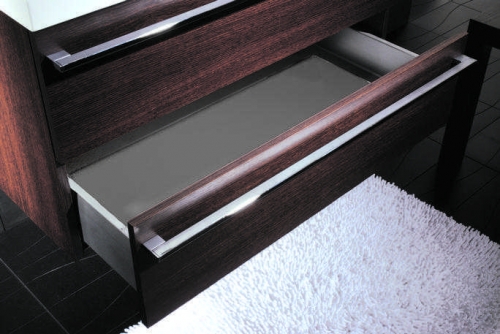 The cabinet frame is made of MDF, and the drawers have chrome handles equipped with metal runners with soft closing.