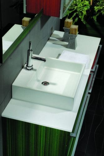 The washbasin can be had in either mineralmarble or crystal glass. Just select it from the menu.