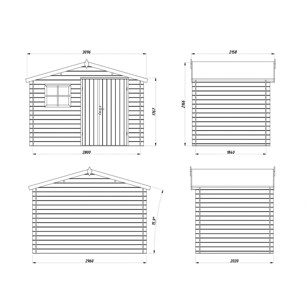 Rectangular outdoor wooden shed, 296 x 200 cm, with an optional floor (this can be added via the drop-down menu).