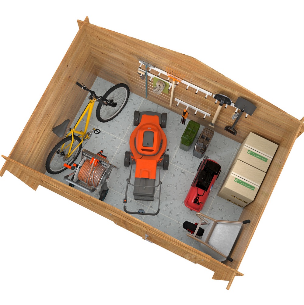 Rectangular outdoor wooden shed, 358 x 296 cm, available with or without a floor CL038
