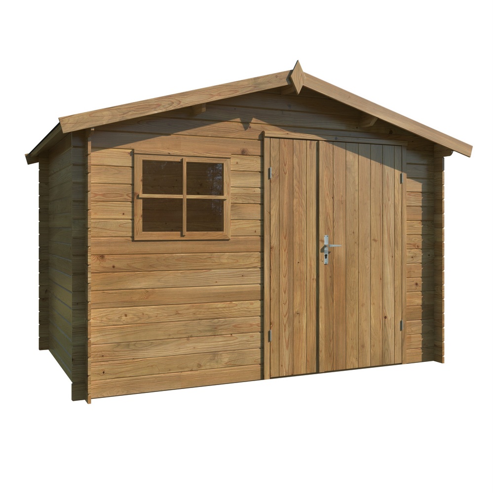 Outdoor wooden shed made of fir, 322 x 292 cm, available with or without a floor CL041