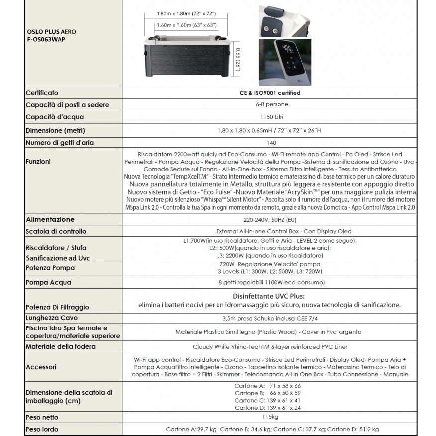 Minispa 148 getti 180x180cm 6-8 postiย MI074