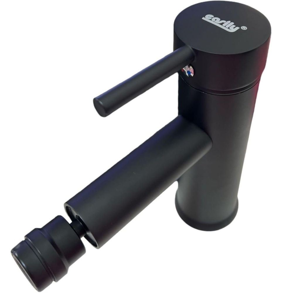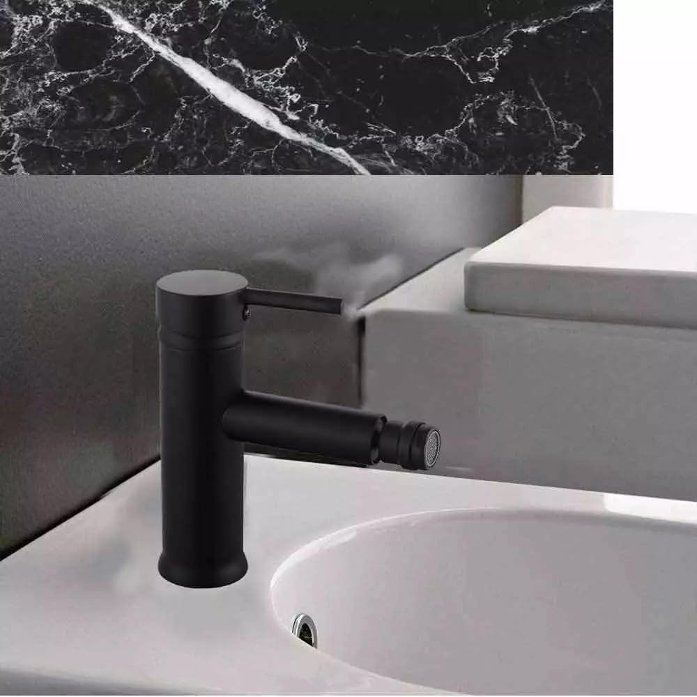 Rubinetto in acciaio inox di colore nero. Modello monoforo per bidet con piletta inclusa.