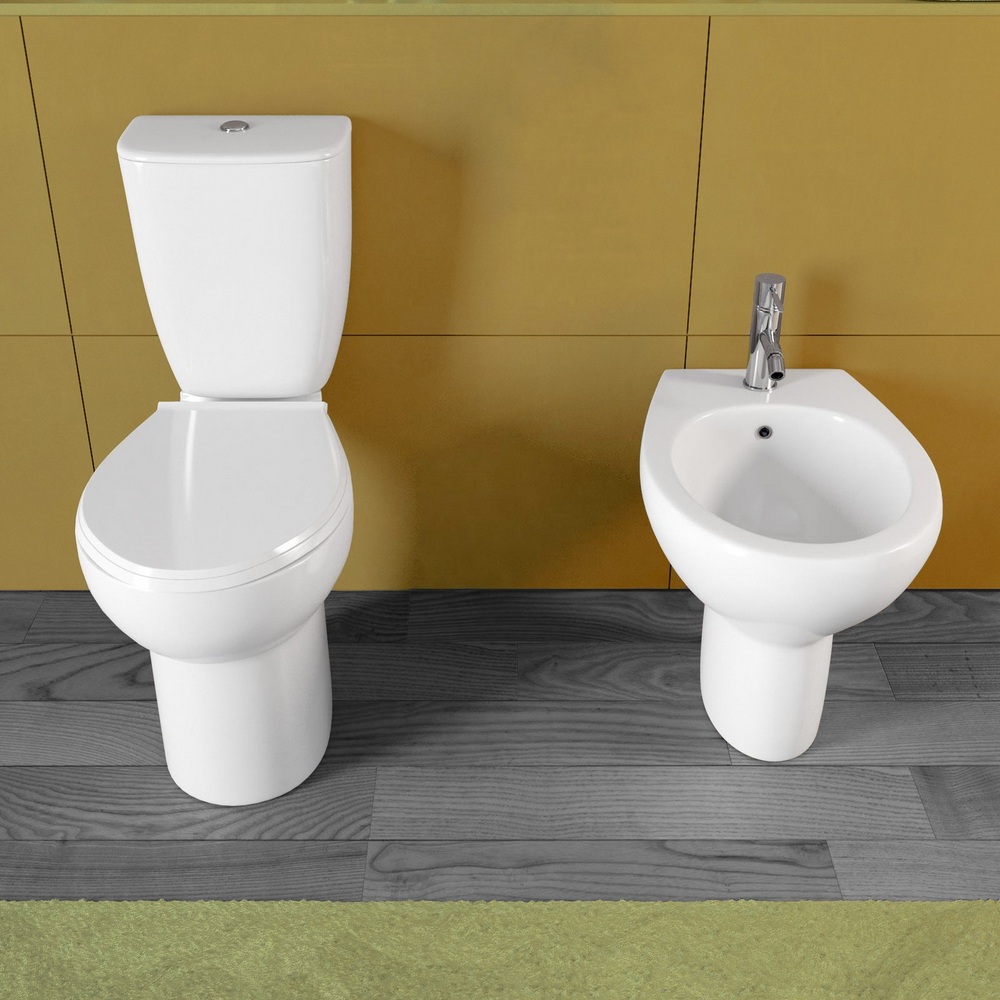 Home Sanitari Ghost wc monoblocco e bidet in ceramica bianca scarico a terra o a parete
