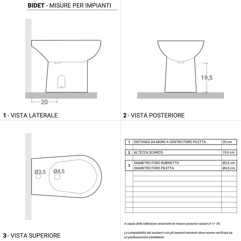 Bidet monoforo con troppopieno