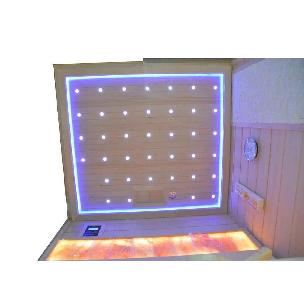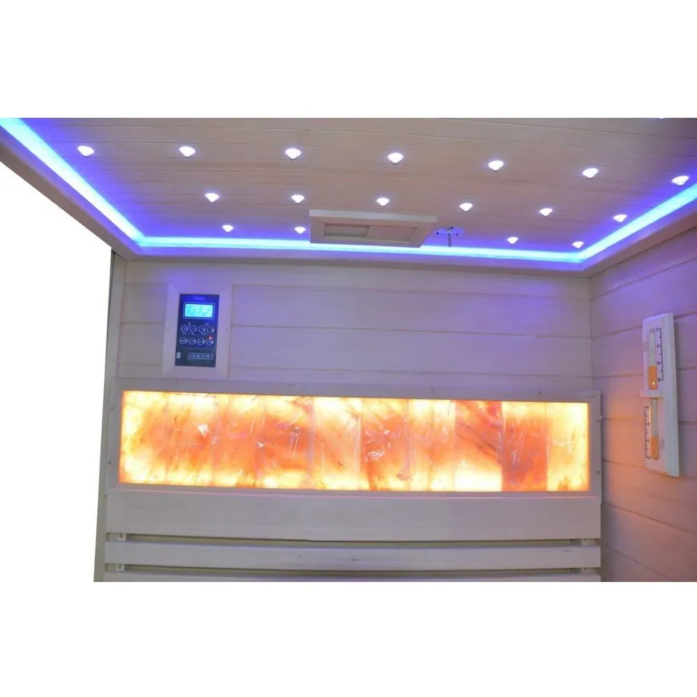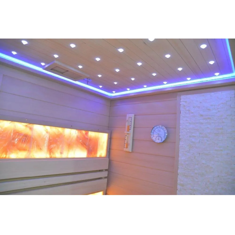 *NB: dopo ogni utilizzo, consigliamo di arieggiare a lungo la sauna (semplicemente tenendo la porta aperta), in modo da aumentare la durata dei pannelli di sale posti sullo schienale.